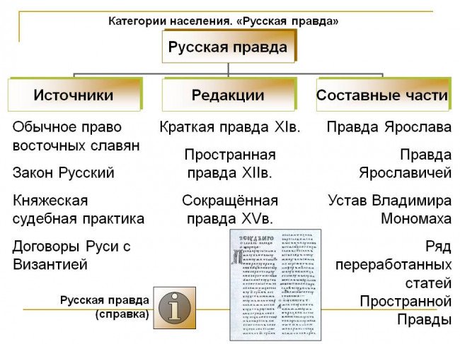 Однако только в XI веке уже в Киевской Руси появился письменный Сборник федерального права, в котором были прописаны обычаи народа и закреплены привилегии правящего класса.